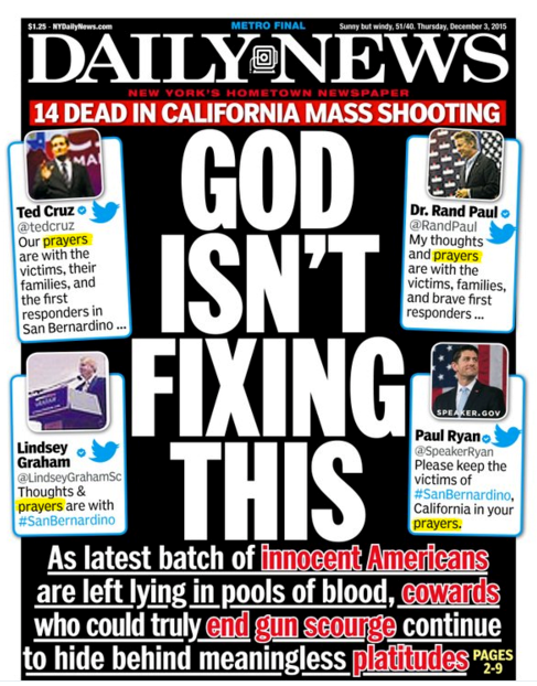 Here’s a suggestion. How about you and your fellow gun nuts stop fellating Wayne LaPew and the NRA , and admit that simply praying isn’t going to fix it. You are the ones with blood on your hands , not the ‘Godless Left’ as you like to call liberals , many , many of whom , by the way , also own guns , and also believe in God , and actually want to do something , instead of ignoring the problem , hoping , somehow , that it will go away.