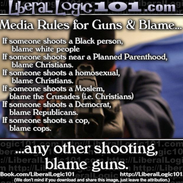 “Any other shooting , don’t blame guns. Don’t blame the NRA. Guns don’t kill people. Gun free zones do. Shooting victims get themselves killed for being unarmed. If anyone is to blame , it’s libtards , Democrats , Barack Obama , and Black Lives Matter.