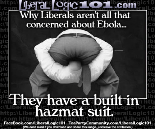 The above meme shows a person’s head inserted into his rectum, with the caption, Why Liberals aren’t all that concerned about Ebola…