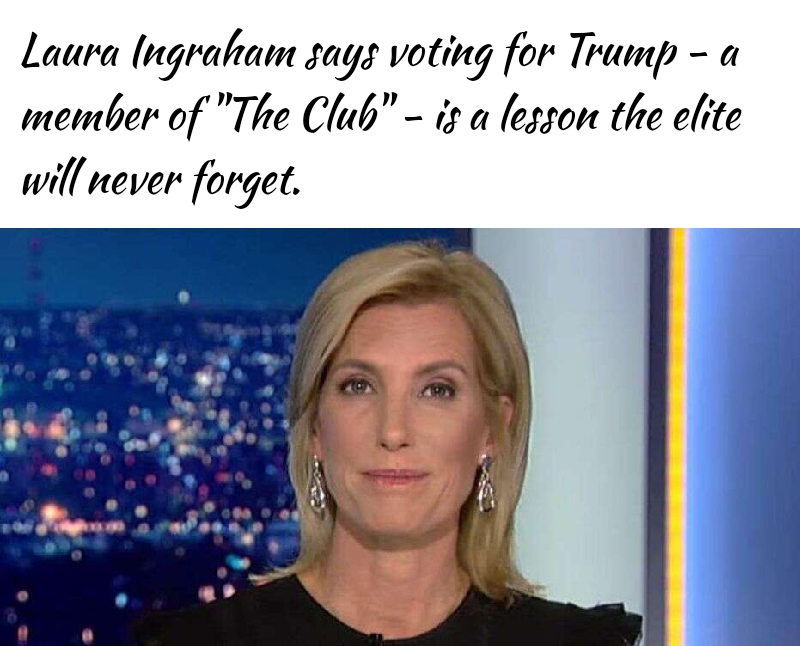 Laura Ingraham Urges Trump Voters To ‘Teach The Elites And Their Lackeys A Message’ By Re-electing A Lackey For The Elites