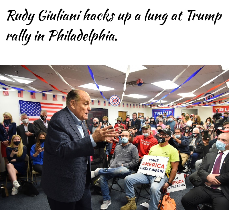 https://www.mediaite.com/politics/rudy-giuliani-falsely-claims-people-dont-die-of-coronavirus-anymore/ At a campaign rally in Philadelphia Monday, Trump lover and former Mayor of New York, Rudy Giuliani hacked up a lung after some questionable comments on the coronavirus.Appearing at a small pro Trump gathering billed as an Italian Americans For Trump event, Giuliani claimed that people are no longer dying from coronavirus infection.Highlights from …